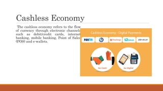 The document discusses India's introduction of a central bank digital currency called the digital rupee (e₹). It will be issued by the Reserve Bank of India as a tokenized digital version of the Indian rupee. The digital rupee pilot was launched in 2022 for wholesale transactions, and later for retail users. Unlike cryptocurrencies, the digital rupee is centralized and regulated by the RBI. It aims to promote a cashless economy, financial inclusion, and reduce costs associated with physical cash. The document compares features of the digital rupee to cryptocurrencies and explains forms of central bank digital currencies.