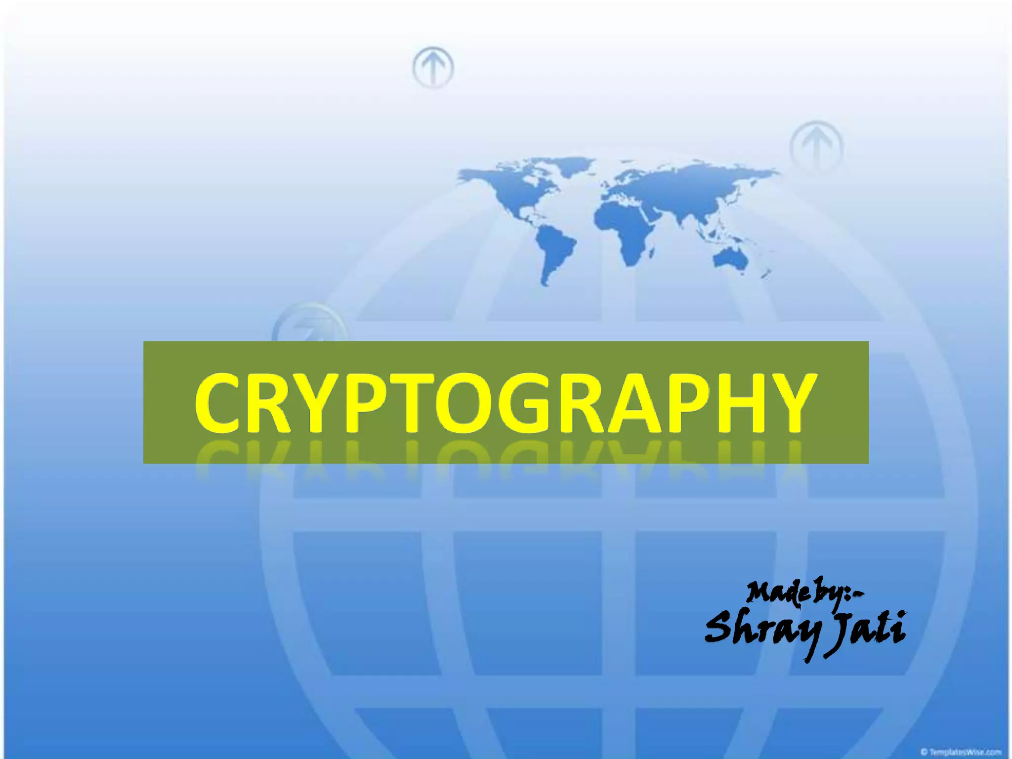 Cryptography is the science of secure communication. It uses techniques like encryption to provide confidentiality, integrity, and authentication of information. The main goals of cryptography are to ensure that information is hidden from unauthorized parties and to verify the identity of senders and the authenticity of messages. Modern cryptography uses both symmetric and asymmetric algorithms, with public key cryptography being widely used to securely exchange keys and for functions like digital signatures. Common cryptographic techniques include encryption, hashing, digital signatures, and digital certificates. Cryptography has many applications including e-commerce, network security, and communication security.