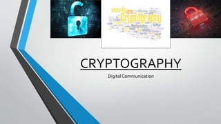 This document provides an overview of cryptography. It defines cryptography as a method of storing and transmitting data in a way that only the transmitter and receiver can access the information. The document then discusses the history of cryptography, including classic ciphers like the Caesar cipher and modern techniques like symmetric and asymmetric cryptography. It describes how symmetric cryptography uses a single key for encryption and decryption while asymmetric cryptography uses public-private key pairs. The document outlines some examples of symmetric and asymmetric algorithms and analyzes the advantages and disadvantages of each approach. Finally, it discusses some applications of cryptography like ATM PINs, encrypted drives, digital signatures, and time stamping.
