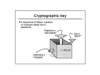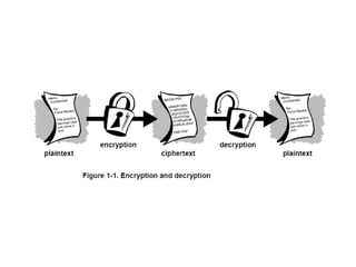 • cipher - algorithm for transforming plaintext to ciphertext