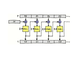 Cryptography for Developers provides an overview of cryptography concepts for developers. It defines cryptography as the encryption of plaintext into ciphertext and back again. It discusses symmetric and asymmetric cryptography, including examples like the Caesar cipher. It covers hashing of passwords for storage and discusses popular algorithms like MD5 and SHA-2. The document also summarizes public key cryptography techniques like RSA and references materials for further learning.
