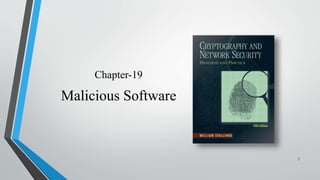 This document defines and describes different types of malicious software programs. It begins by defining a malicious program as a set of instructions that runs on a computer without the user's consent to perform unauthorized actions. It then categorizes malicious programs into those that need a host program and those that are independent. Specific types of malicious programs discussed include trap doors, logic bombs, Trojan horses, zombies, viruses, and worms. For each type, details are provided about how they function, spread, and the harm they can cause systems.