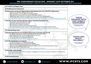 The document advertises and provides information about the 7th annual IP Crys conference on patenting, litigation, and life cycle extension strategies for crystalline forms. The conference will be held October 25-26, 2011 in London and focus on maximizing patent wealth, understanding challenges in demonstrating innovation in crystalline forms, and implementing effective enforcement and protection strategies for polymorph patents. A pre-conference focus day on extending patent lifecycles through SPC/PTE applications will be held October 24.