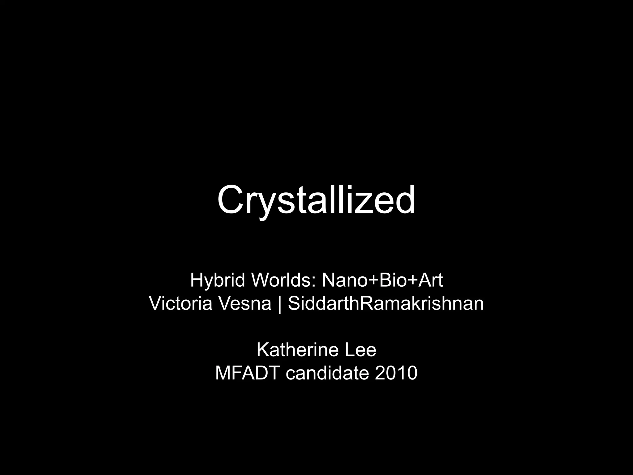Crystallized seeks to apply the structural forms and relationships found in viruses to the design of wearable objects. The project aims to abstract and reinterpret the elegant shapes and architectures of viruses to create novel wearable designs and explore new applications. Key aspects of the project include laser-cutting textiles based on molecular representations of viral structures and creating helical accessory prototypes that apply virus-like forms to wearables while exploring new functional architectures.