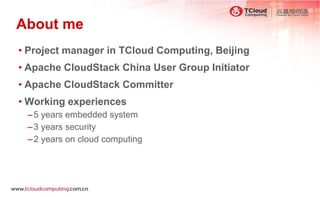 CloudStack provides a viable option for private cloud deployment in China, addressing key customer concerns around stability, customization, local support and cost. The document discusses CloudStack's suitability for private vs public clouds in China and compares it to alternatives like VMware and OpenStack. It also presents a real-world case study of a large-scale CloudStack deployment for a government e-governance project virtualizing over 300 applications across multiple zones. Lessons learned include the importance of preparation, testing, network stability, backup solutions and contributing back to the CloudStack community.