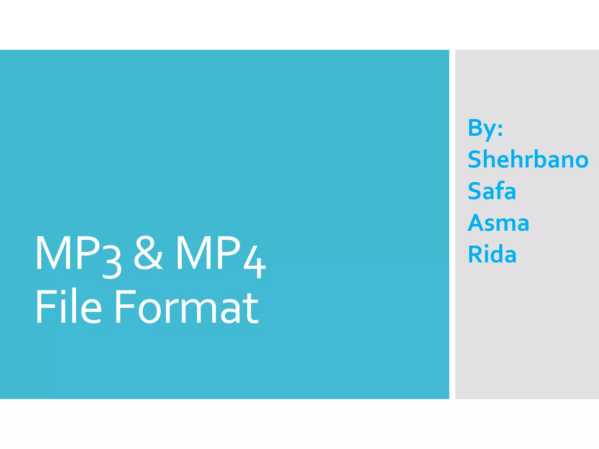 MP4 is a container format that can store both audio and video compressed in different formats, along with subtitles. It allows streaming over the internet and supports high quality audio and video playback. MP3 is an audio-only compression format that reduces file sizes while maintaining good sound quality. Unlike MP4, MP3 cannot store video or multiple audio/video formats. Both formats are commonly used for storing and sharing multimedia online and on mobile devices.