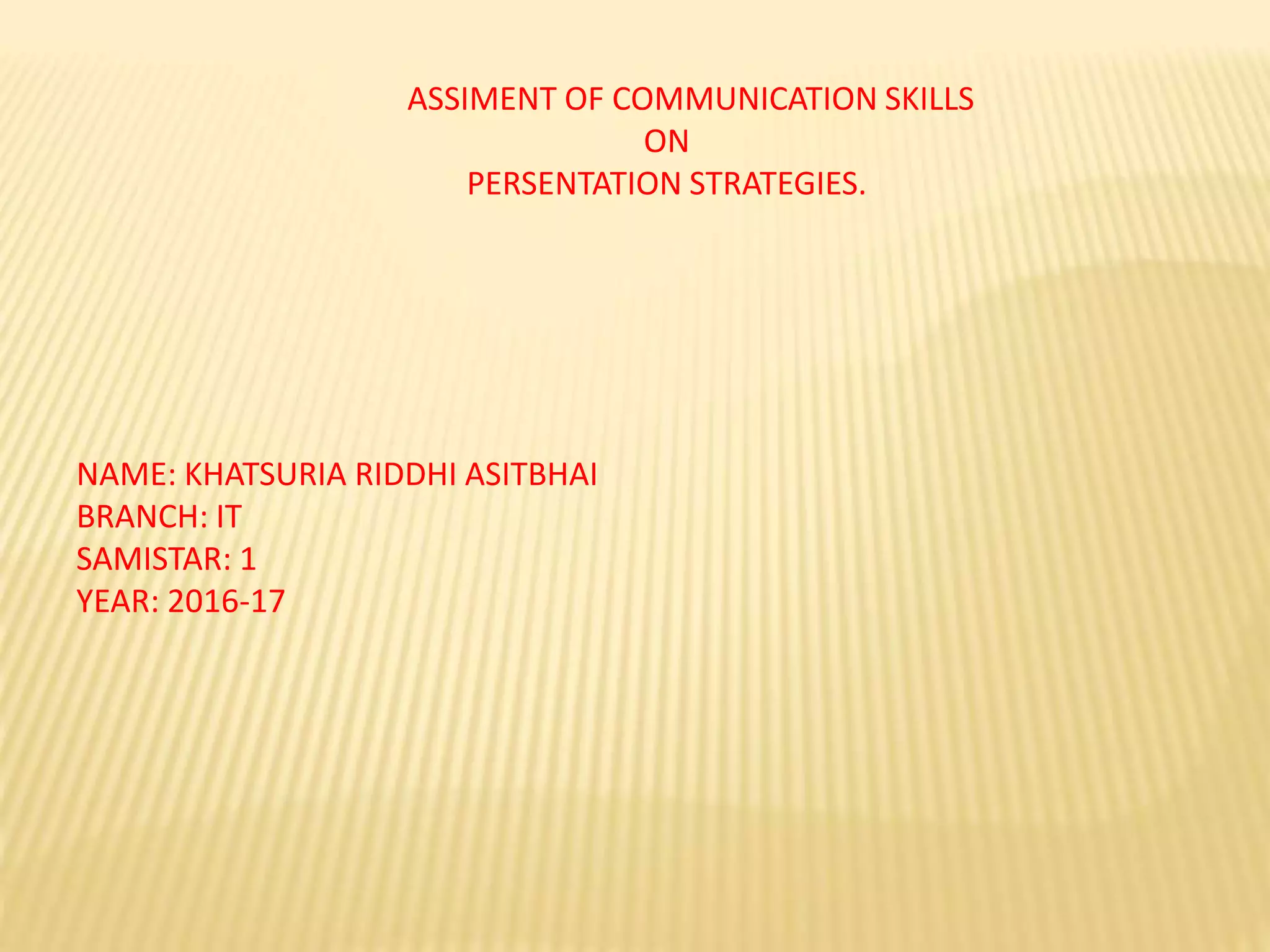 This document provides an assessment of communication skills for presentation strategies. It discusses several important aspects of giving an effective presentation, including analyzing your audience, organizing the content, using effective kinesics (body language), proxemics (use of space), paralinguistics (vocal delivery), and chrinemics (use of time). Some key points covered include understanding your audience's interests, keeping an erect posture with open body language, making eye contact, modulating your voice properly, and allowing enough time on important topics. The overall document emphasizes the importance of nonverbal communication and audience engagement for a successful presentation.