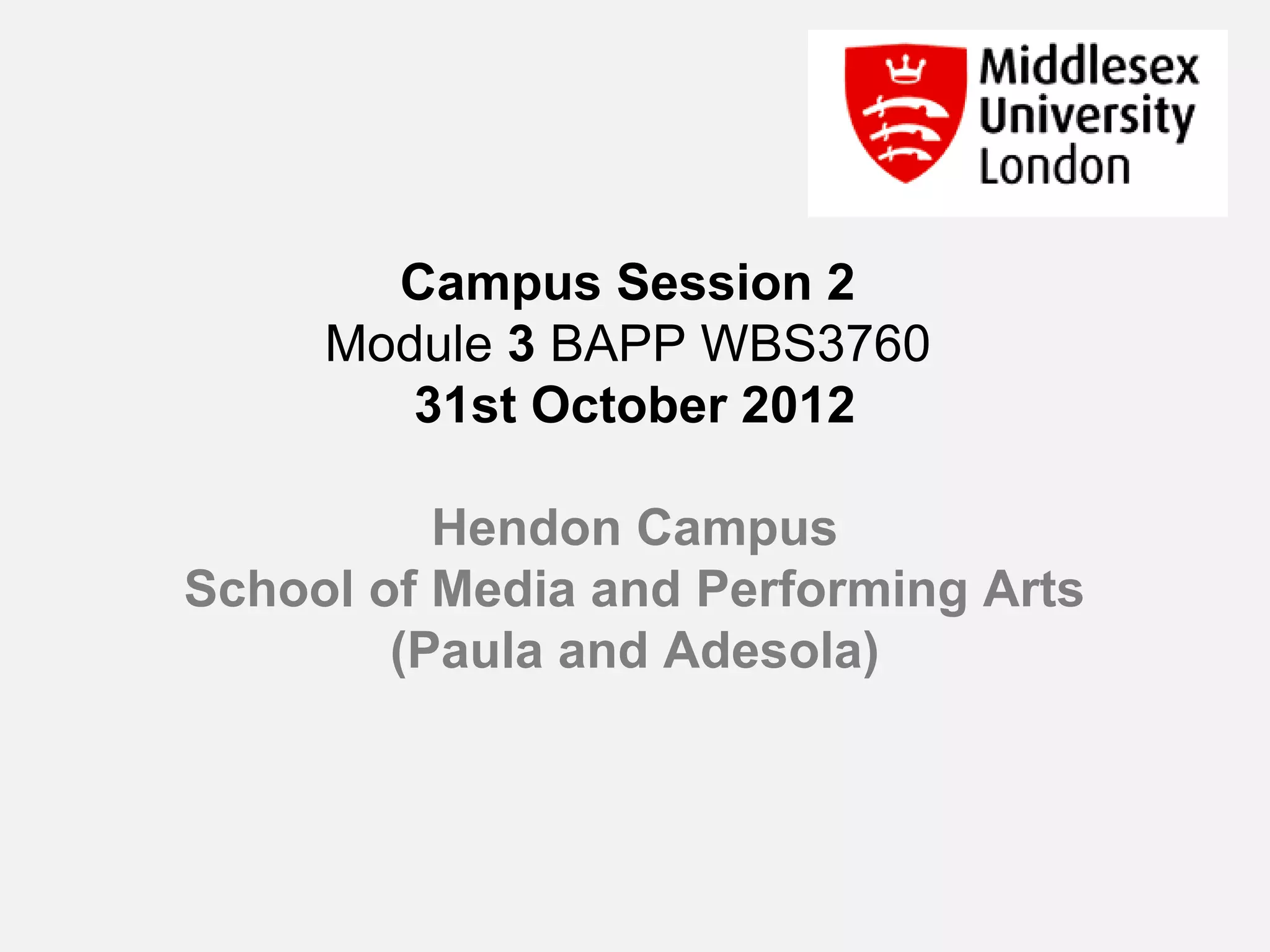 This document provides guidance for students on the final module assessment for the BA (Hons) Professional Practice (Arts) 3760 course. The assessment consists of three main parts: 1) A critical review of the student's inquiry process, 2) A professional artefact emerging from the inquiry, and 3) An oral presentation. The document outlines the requirements for each part and provides tips on writing, analyzing findings, and structuring the critical review. It also discusses giving and receiving feedback throughout the inquiry and assessment process.
