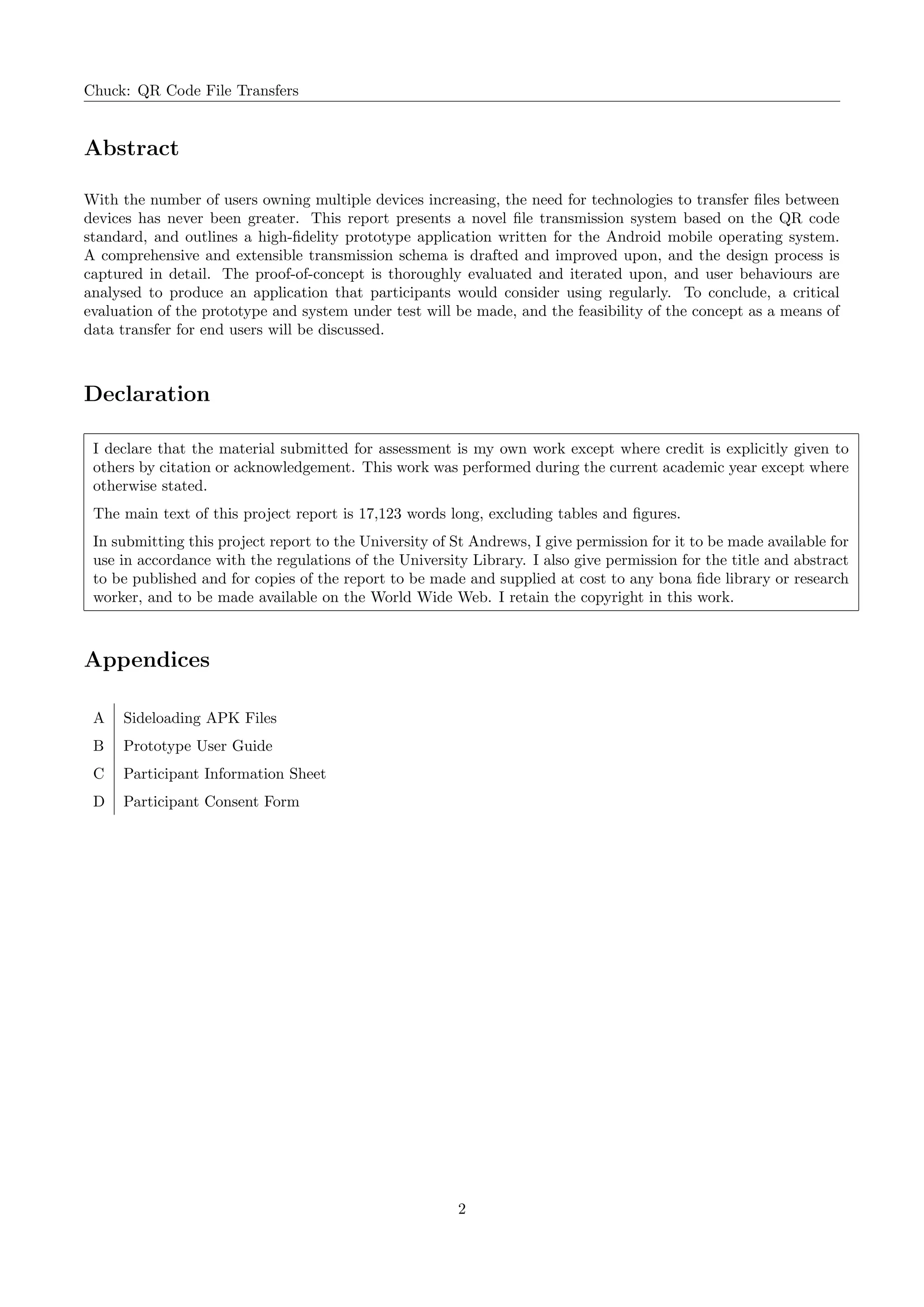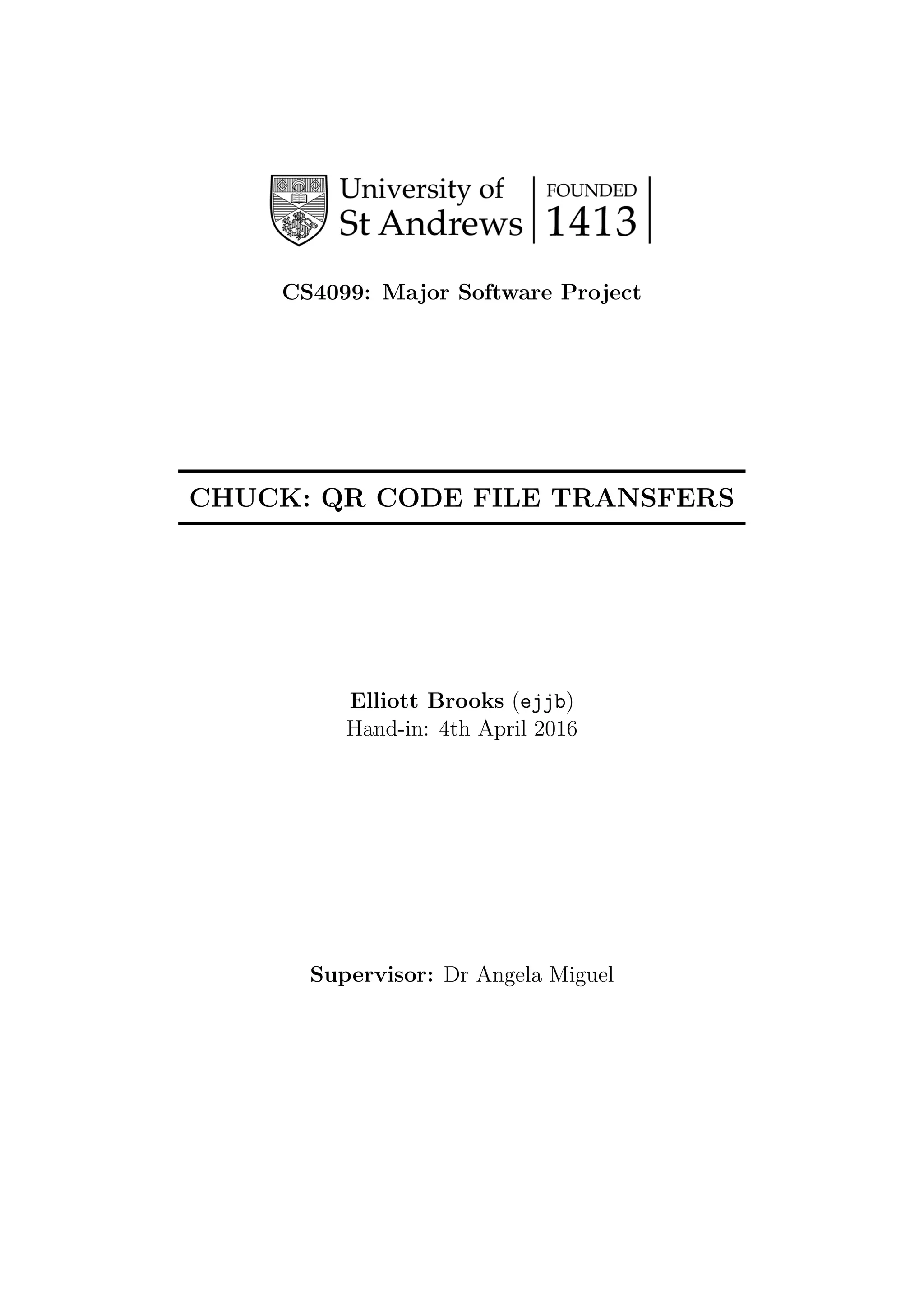 This document describes a student project to develop a prototype file transfer application called Chuck that uses QR codes. The project aims to address the need for easy file transfers between multiple devices. The document outlines the design and development process, including interaction design, technical design of the transmission schema and application, prototype assessment through user testing, iteration of the prototype based on feedback, and evaluation of the effectiveness and future work. Key aspects of the project include creating mockups, building an Android prototype, evaluating it with participants, and improving the prototype based on results.