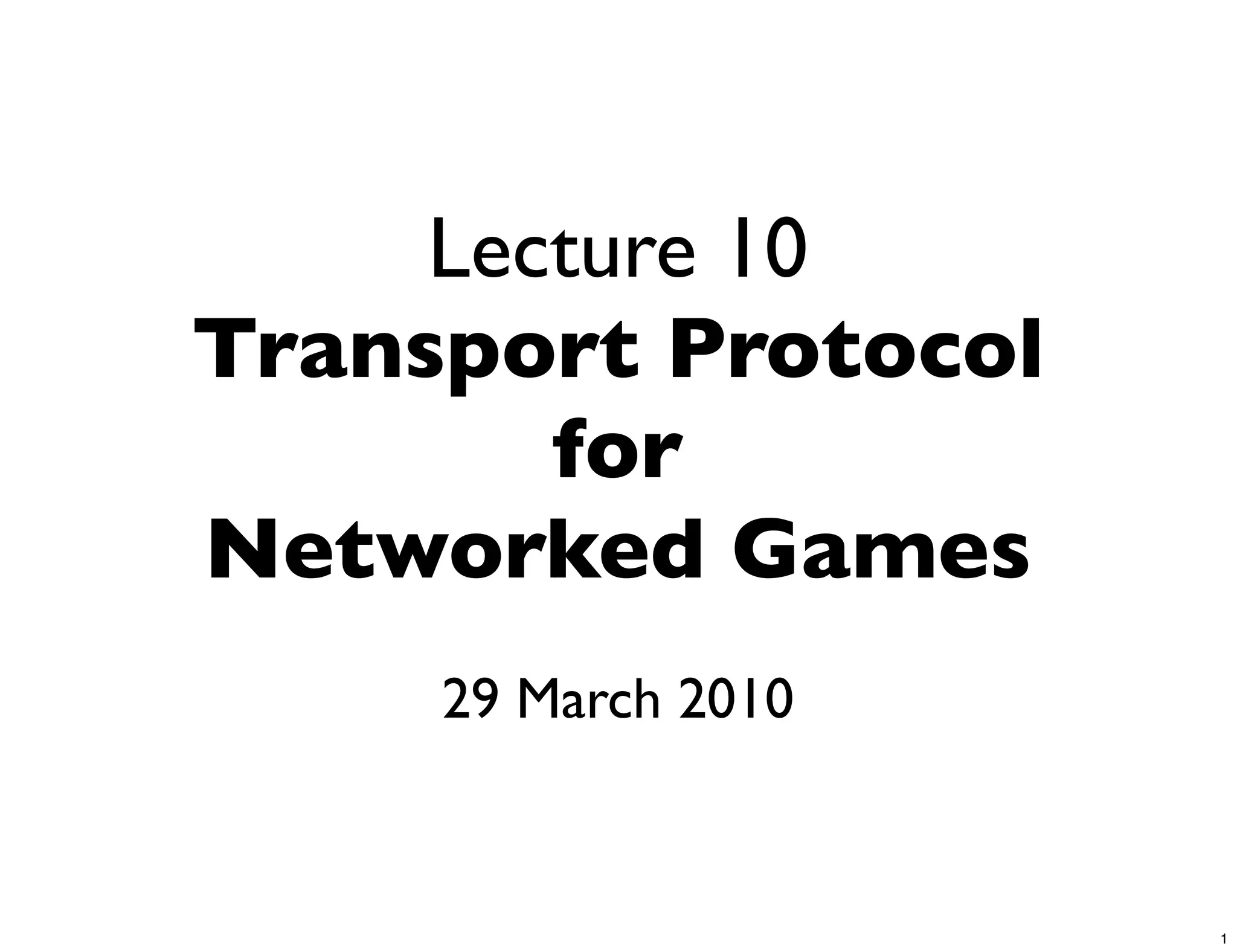 The document discusses transport protocols for networked games and compares TCP and UDP. While TCP provides reliable delivery, it has higher latency than UDP. UDP has lower overhead but is unreliable. The document examines why certain popular games use TCP or UDP and outlines strategies to make TCP perform better for games, such as reducing delays, retransmitting bundles of data, and combining thin streams. It suggests the Stream Control Transmission Protocol (SCTP) as a potentially ideal transport for games since it allows flexibility in reliability and ordering of messages.