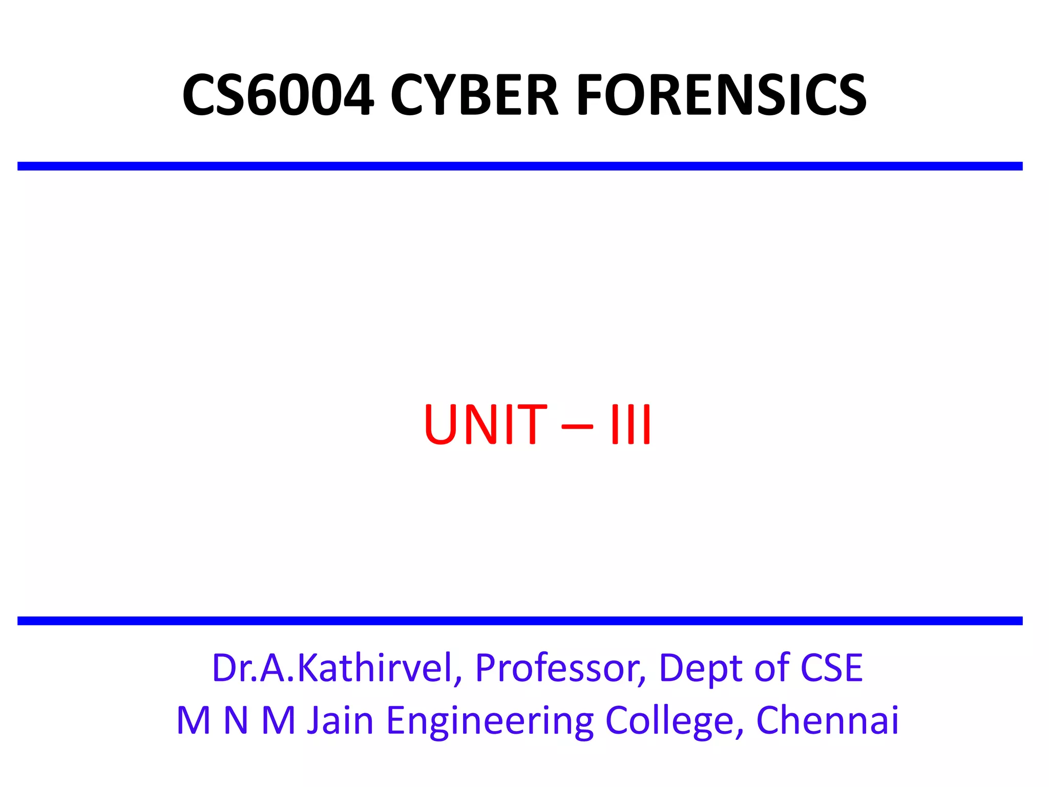 The document provides an extensive overview of computer forensics, including its definition, goals, and various techniques for investigating computer-related crimes such as identity theft and cybercrime. It discusses the importance of digital evidence, its admissibility in court, and specific case studies illustrating failures in electronic records authentication. Additionally, it covers the roles of various stakeholders in computer forensics, including law enforcement and private corporations, and outlines the types and categories of cybercrime.