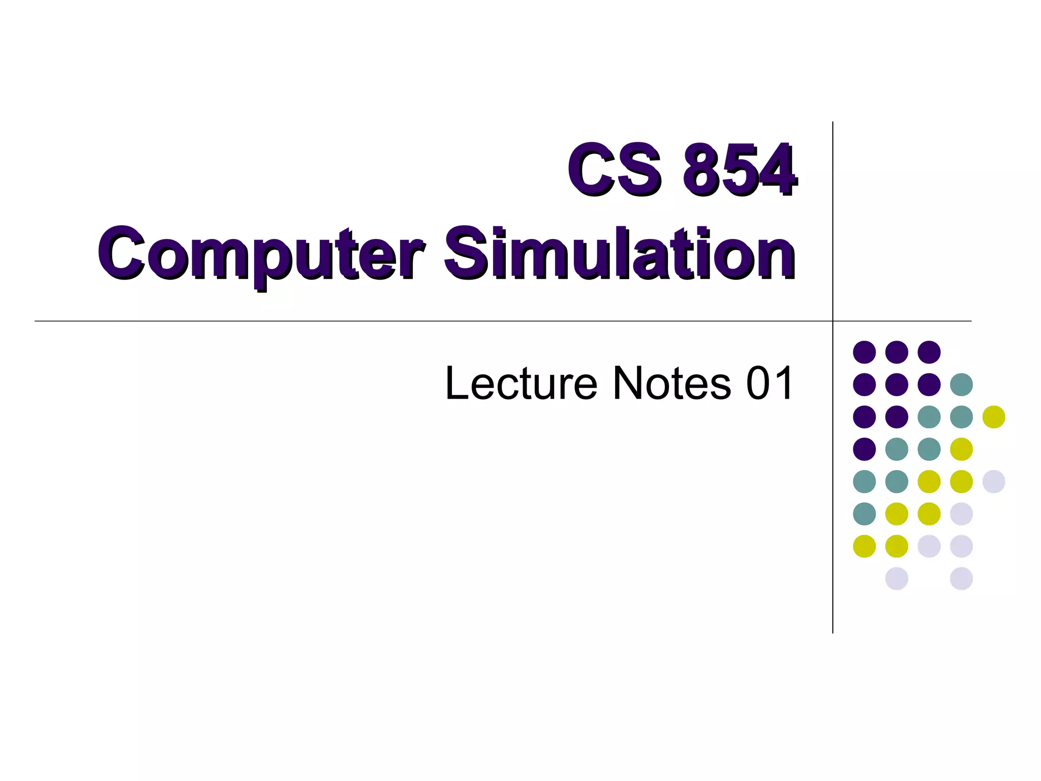 This document provides an introduction to computer simulation. It discusses how simulation can be used to model real systems on a computer in order to understand system behavior and evaluate alternatives. It describes different types of models including iconic, symbolic, deterministic, stochastic, static, dynamic, continuous and discrete models. Monte Carlo simulation is introduced as a technique that uses random numbers. The document outlines the steps in a simulation study and provides examples of systems and their components that can be modeled using simulation.
