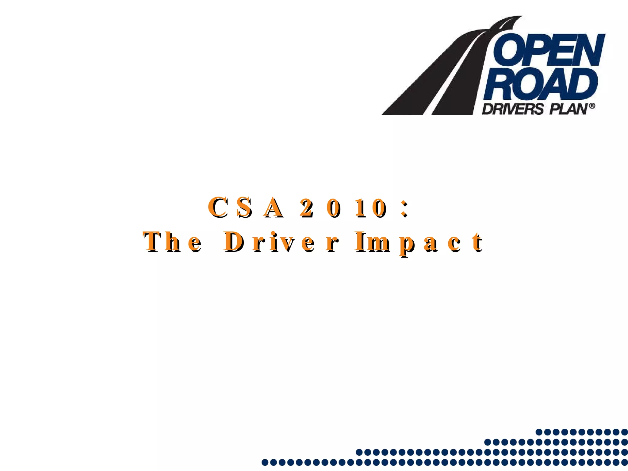 The document discusses the Comprehensive Safety Analysis 2010 (CSA 2010) implemented by the FMCSA to enhance road safety by focusing on high-risk commercial motor vehicle carriers and drivers. The CSA 2010 introduces a Safety Measurement System (SMS) that evaluates safety performance based on several categories and is likely to lead to stricter hiring policies due to increased scrutiny on drivers' records. It emphasizes the importance for drivers to understand their safety ratings, keep track of their carriers' scores, and be proactive in maintaining a clean inspection history.
