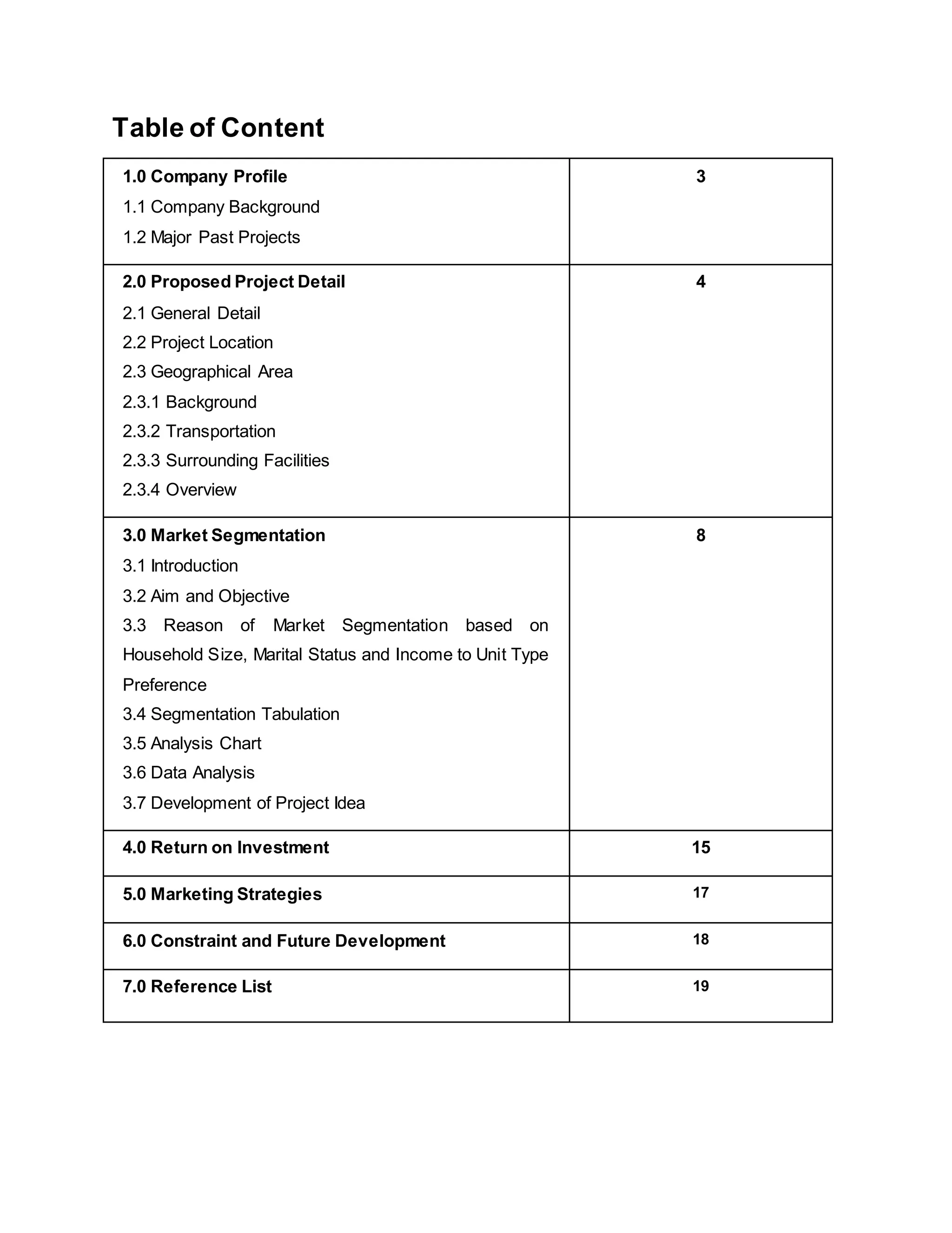 2) The target market segments for the serviced apartments are identified as households with 2-6 members who are married or divorced with incomes of RM5,000-8,000 based on an analysis of household size, marital status and income.