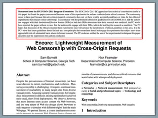 The document discusses the ethical challenges faced by researchers in the online data research community, highlighting the importance of informed consent and the complexities of data ethics. It presents findings from a survey of social computing researchers regarding their ethical practices and beliefs, revealing a lack of widely accepted guidelines for ethical online research. Key recommendations include enhancing transparency, data minimization, and respecting the contextual norms of online data usage.