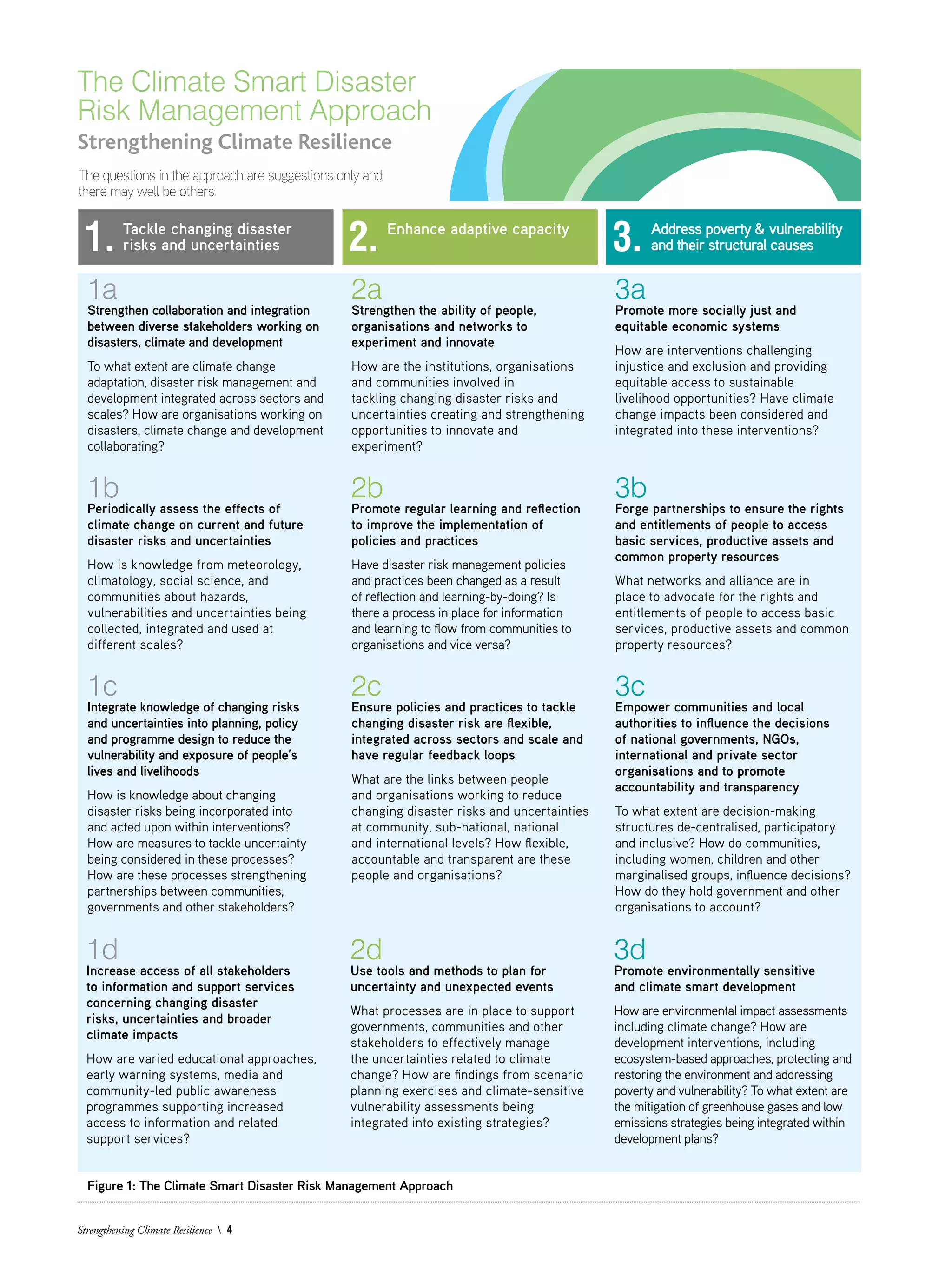 1. Tackle changing disaster risks and uncertainties by integrating climate adaptation, disaster risk management, and development efforts across sectors and scales through collaboration.