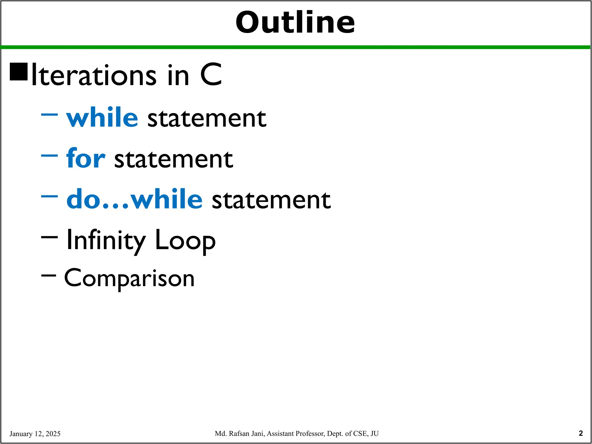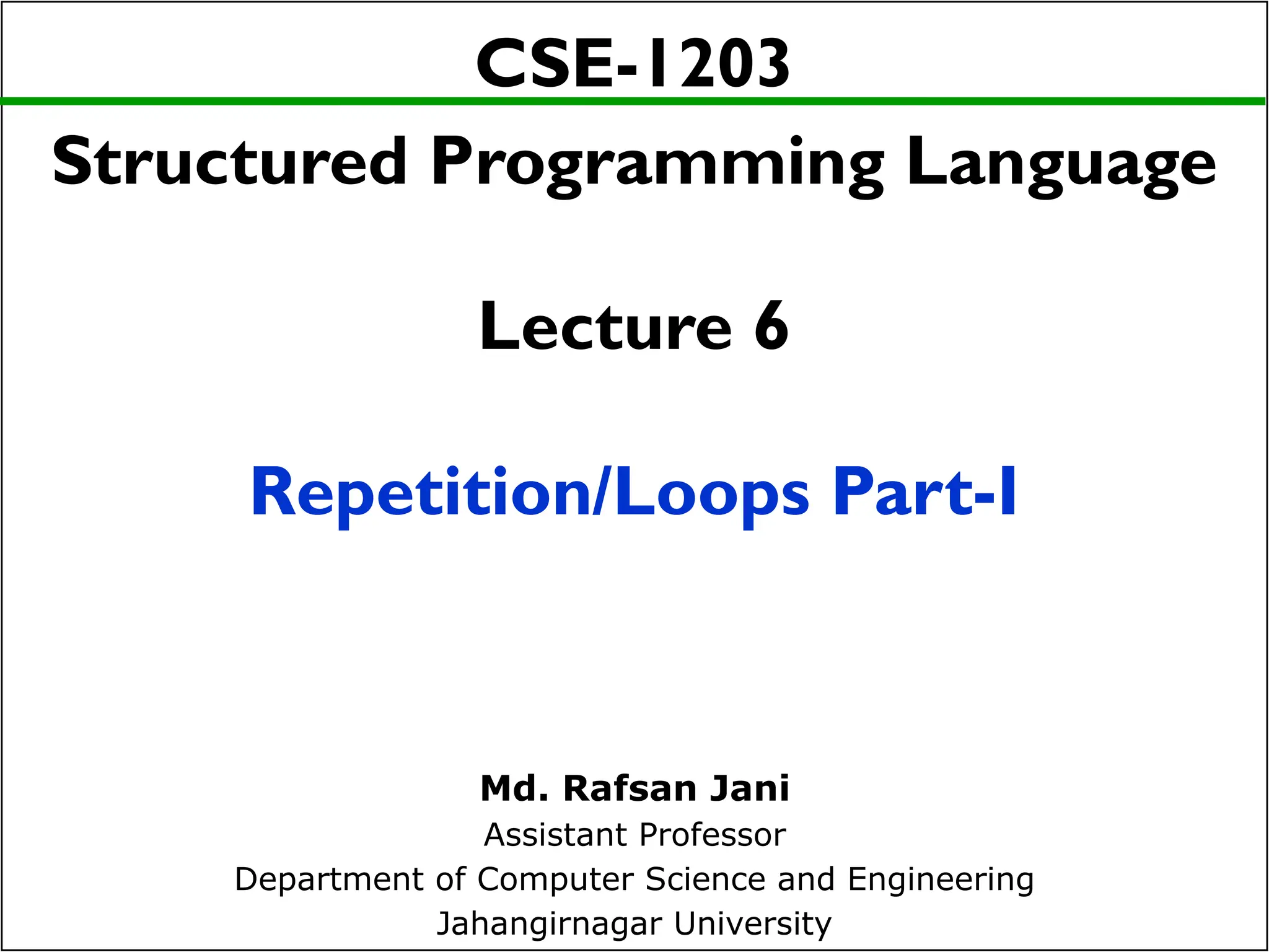 This document discusses repetition and loops in the C programming language, emphasizing the necessity of executing code blocks multiple times. It outlines three types of loops—while, for, and do-while—and explains their structures and use cases, including the significance of conditions for executing loop bodies. The material is intended for students in a structured programming course to aid their understanding of flow control in programming.