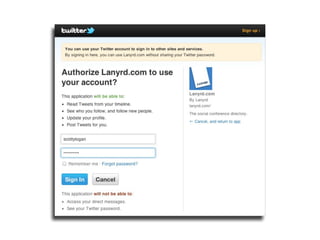The document discusses identity management in the cloud and APIs. It notes that provisioning is essentially the same across cloud services, so the APIs should be similar as well. It introduces the Simple Cloud Identity Management specification, which aims to standardize user and group provisioning across cloud providers using a common RESTful API. The document also discusses the growth of APIs and how developers are driving adoption by building applications and mashups that integrate multiple services. It contrasts SOAP and REST approaches, noting that REST and JSON are now more common as they map better to typical programming models. OAuth is mentioned as the preferred approach for authentication in APIs.