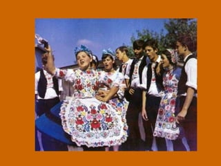 The art of Kalocsa Embroidery originated in the second half of the 19th century in Hungary, originally using only white thread and hole patterns. The development of Kalocsa needlework was spurred by printing in 1860, making pre-made patterns popular though women still enjoyed custom designs. The embroidery became widespread in the Kalocsa region.