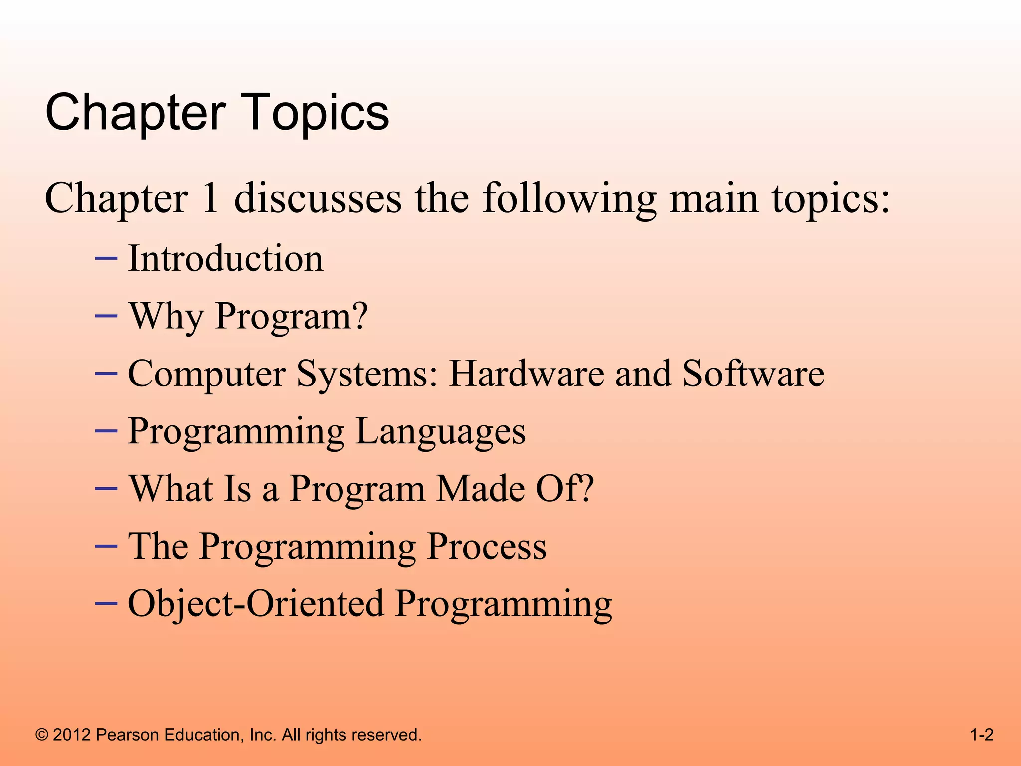 The chapter discusses the history and components of computer systems and the Java programming language. It describes how Java was created to enable programs to run on various devices and operating systems. The chapter outlines computer hardware, including the central processing unit, memory, storage, and input/output devices. It also discusses operating systems, application software, programming languages, and how Java source code is compiled into bytecode that runs on the Java Virtual Machine across different computers.