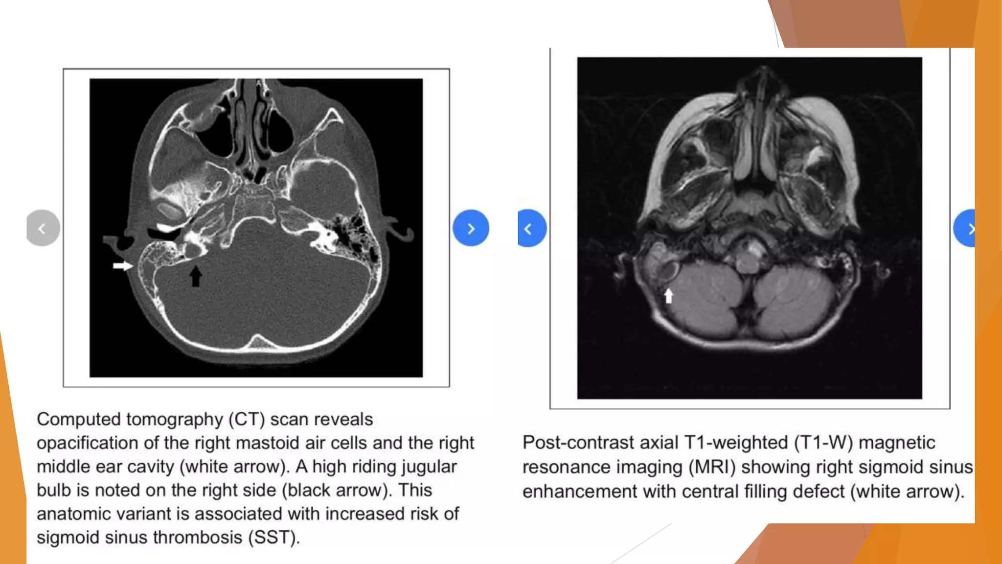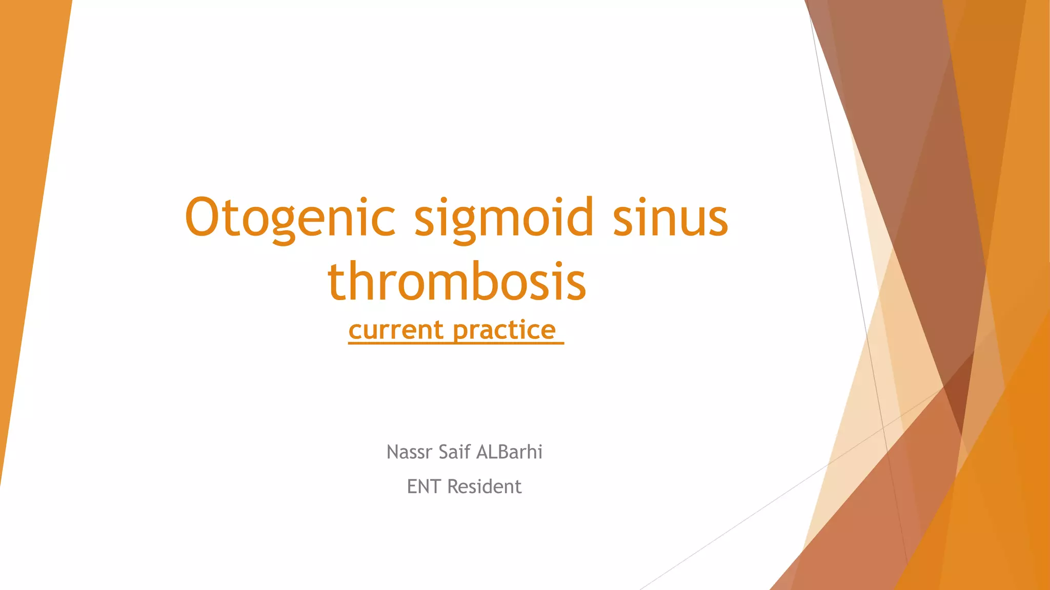This document provides an overview of otogenic sigmoid sinus thrombosis. It discusses the epidemiology, etiology, presentation, management, and treatment of this condition. Sigmoid sinus thrombosis is usually caused by infections from acute or chronic otitis media. Clinical features vary depending on the stage but may include fever, headache, and postauricular edema. Diagnosis involves imaging studies like CT or MRI. Treatment involves long-term intravenous antibiotics as well as surgical drainage of the infection site via mastoidectomy. While controversial, some studies support the use of anticoagulation to prevent thrombus propagation, though it risks bleeding complications.