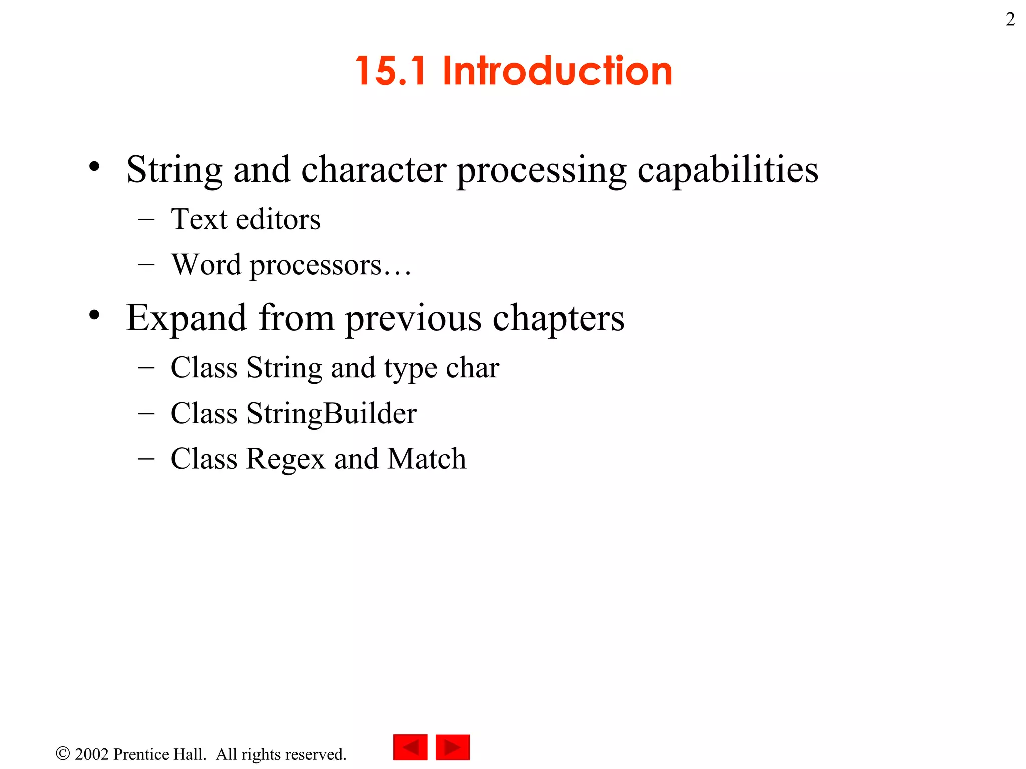 The document outlines the key topics covered in Chapter 15 on strings and characters in C#, including fundamentals of characters and strings, string constructors, using the string indexer and length property, comparing strings, and using methods like StartsWith and EndsWith. Code examples are provided to demonstrate using features like the string indexer, Length property, CopyTo method, comparing strings with Equals and CompareTo, and checking if a string starts or ends with a substring.