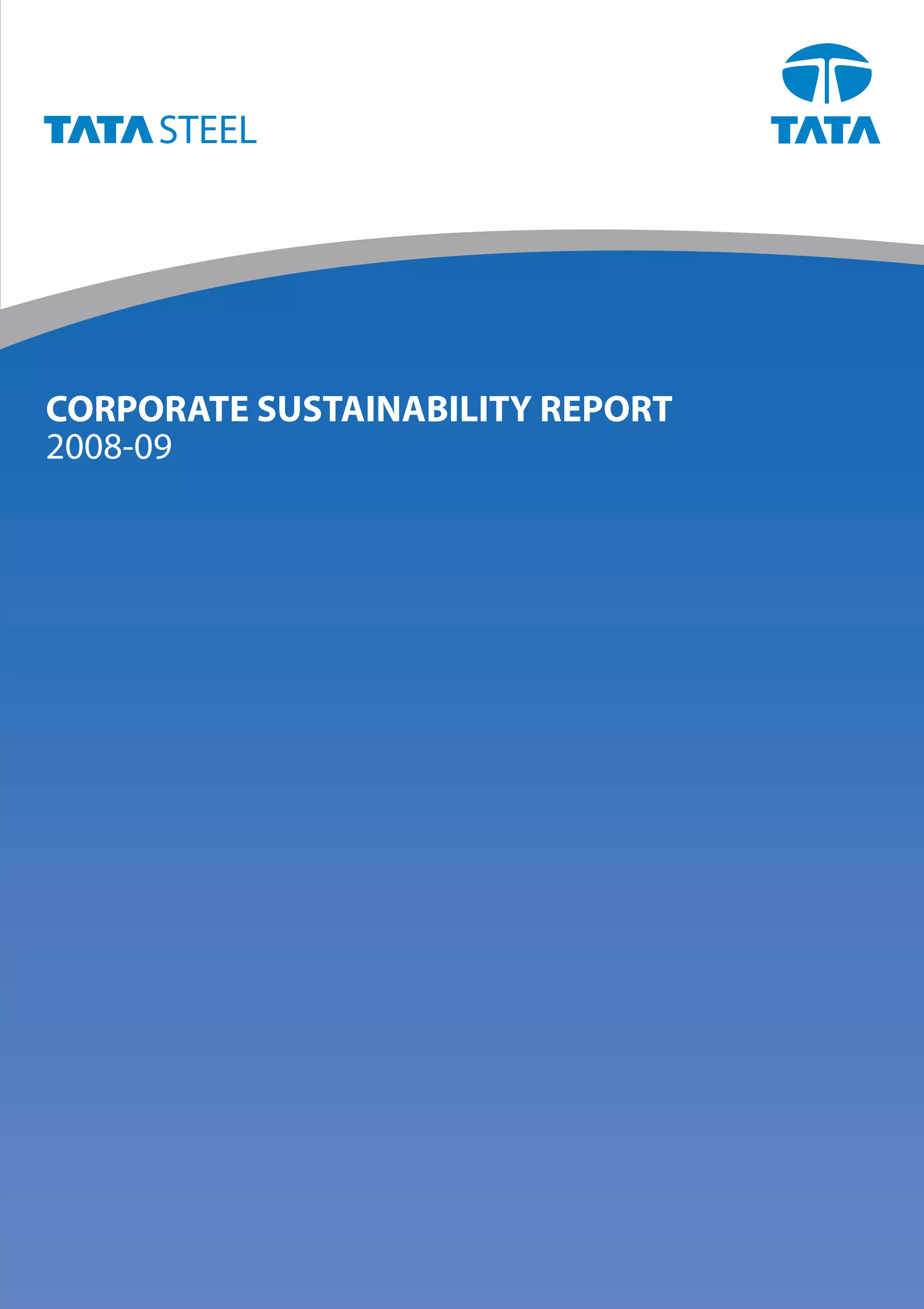 This document is the corporate sustainability report of Tata Steel for 2008-09. It discusses Tata Steel's commitment to sustainability and managing impacts on stakeholders. Key points include: