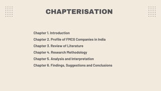 This document provides an overview of a research study on corporate social responsibility (CSR) practices of fast-moving consumer goods (FMCG) companies in India. The study aims to examine key CSR activities, trends in CSR spending, the relationship between CSR spending and profitability, and stakeholders' perceptions of CSR. It also seeks to identify new opportunities for CSR. The researcher conducted secondary data analysis of CSR reports and surveyed 547 stakeholders to understand perceptions. Statistical tools like index numbers, correlation tests, and reliability analysis were used to analyze the data.