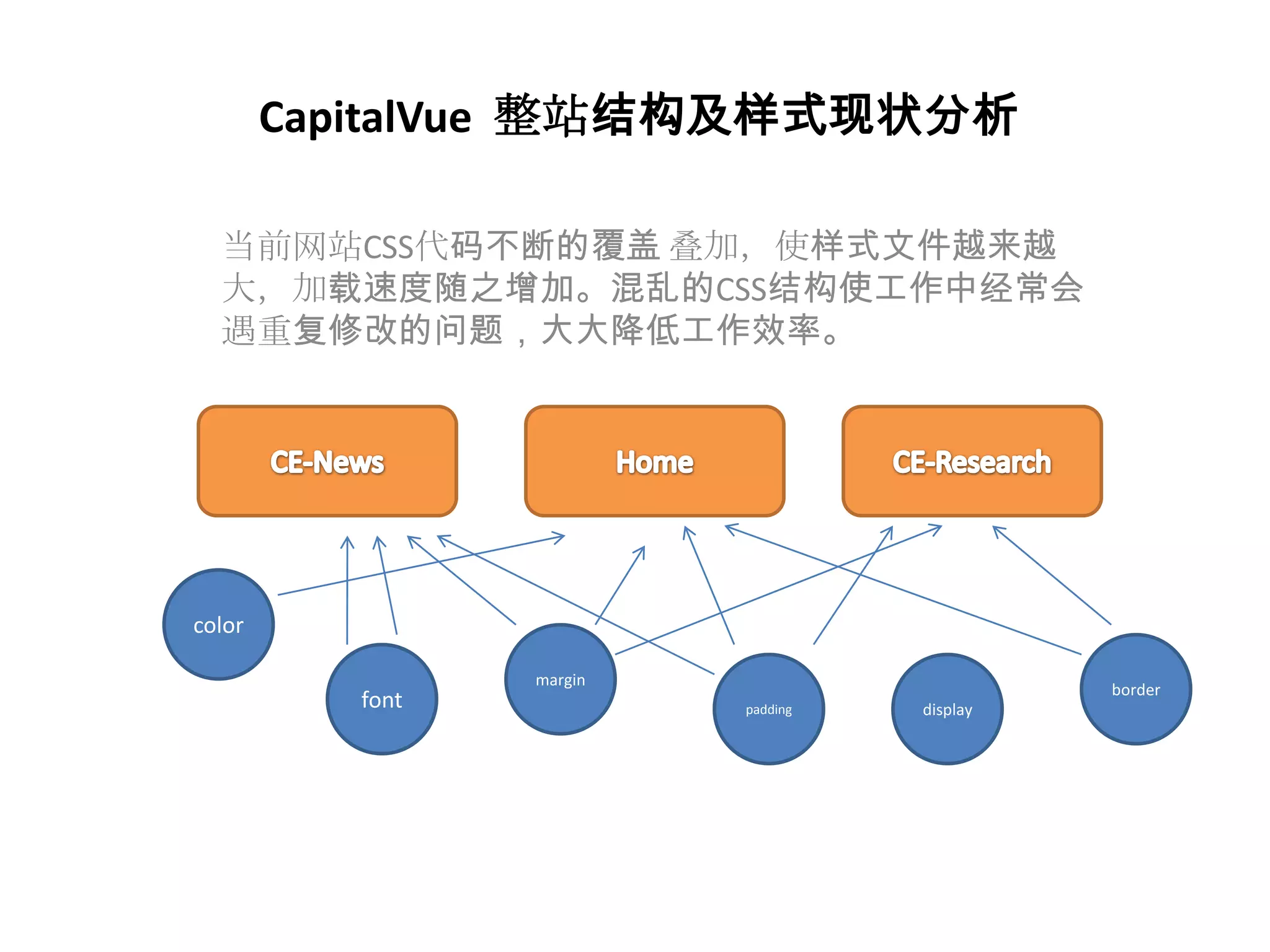 文档分析了当前网站的 CSS 代码结构和样式管理现状,指出了混乱的原因及影响效率的因素。提出了三种 CSS 整合方案,并评估了不同方案的效果与时间需求。关键问题包括缺乏统一的设计标准及对网站结构的理解不足。