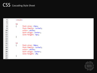 This document provides an introduction to Cascading Style Sheets (CSS) and discusses why CSS is used, what CSS code looks like, and the different ways to insert CSS including external style sheets, internal style sheets, and inline style sheets. The document concludes with a summary and questions section.