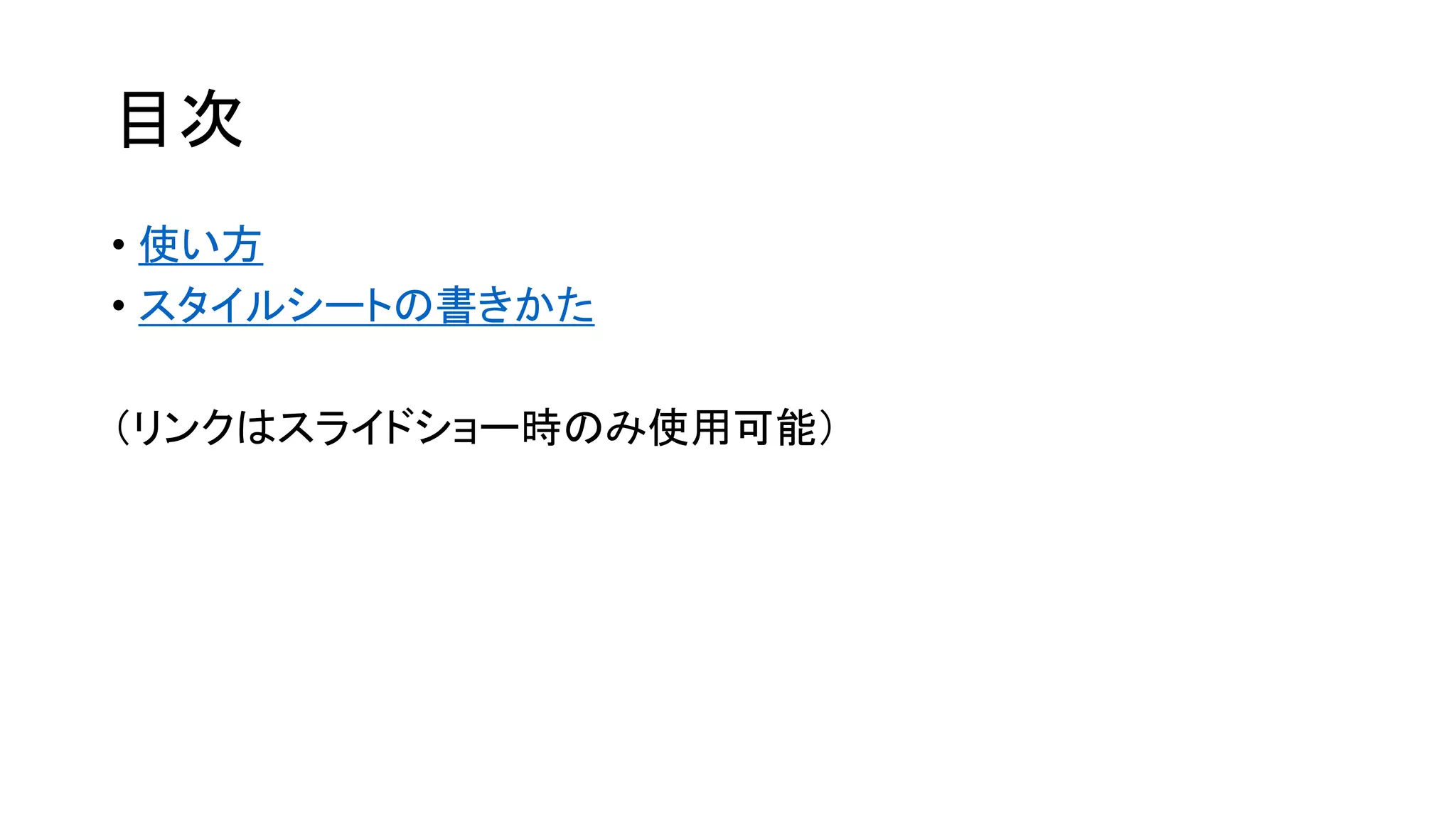 • スタイルシートの書きかた (リンクはスライドショー時のみ使用可能)