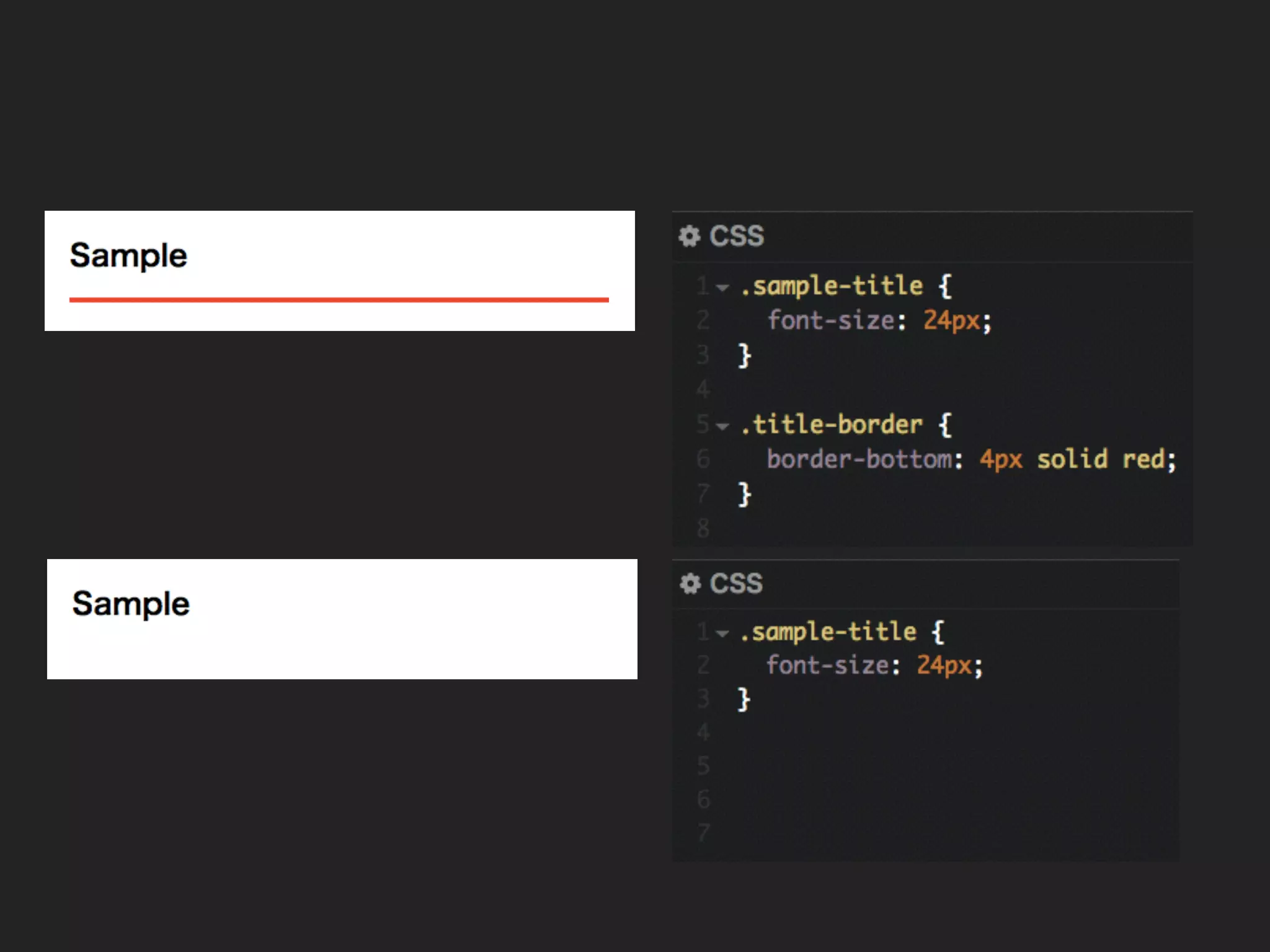 .list-c:before, .list-d:before, .list- e:before, .list-f:before, .list-g:before, .clearfix:after, .list-a:after, .list-b:after, .list-c:after, .list-d:after, .list-e:after, .list-f:after, .list-g:after content: ''; display: table !important; } .clearfix:after, .list-a:after, .list-b:after, .list-c:after, .list-d:after, .list- e:after, .list-f:after, .list-g:after clear: both; } .list-a { color: #fff; } CSS 多用するclassはユーティリティ としてhtmlに指定する。