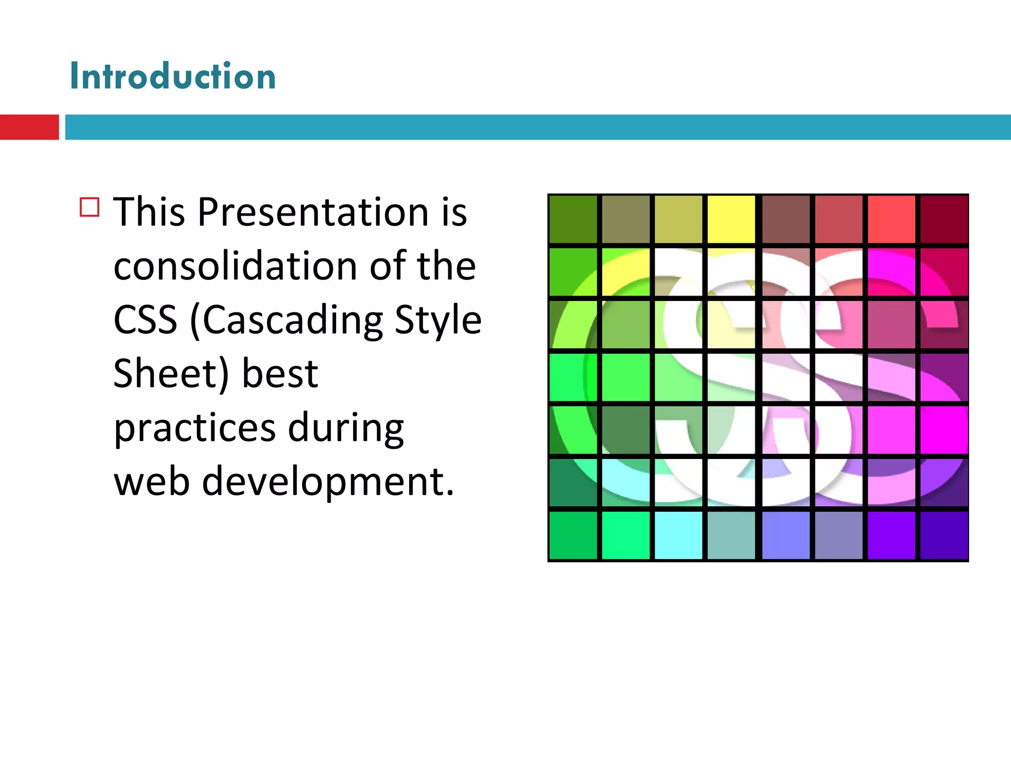 The document discusses CSS best practices for web development. It recommends using a CSS reset to eliminate browser inconsistencies, organizing stylesheets in a logical structure, writing readable CSS code with proper formatting and indentation, keeping CSS consistent through naming conventions, combining similar CSS elements, using multiple classes, using CSS shorthand where possible, commenting CSS code, and avoiding inline styles. It also recommends validating CSS code to quickly spot errors.