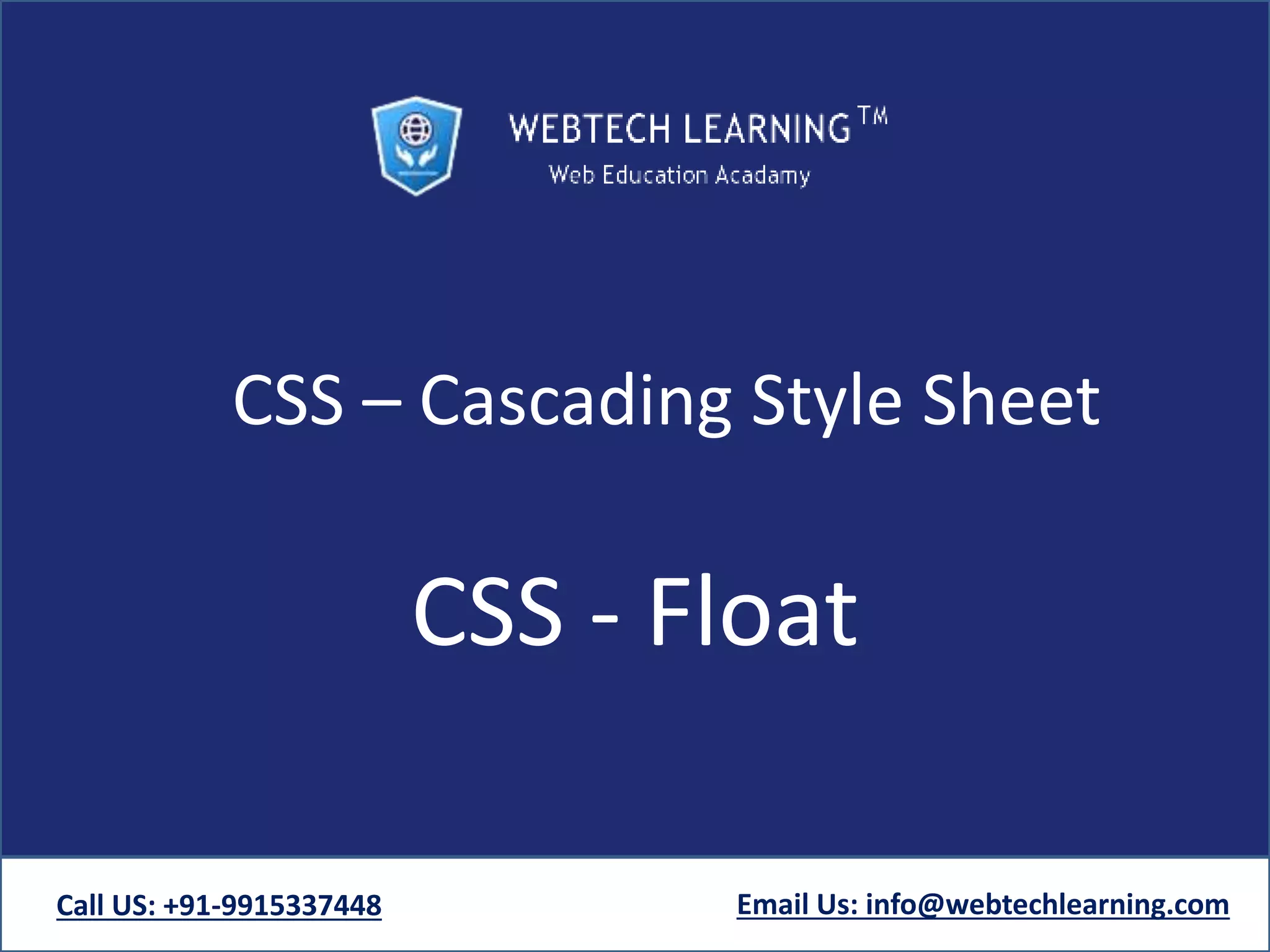 This document explains the CSS float and clear properties used to control element positioning on a webpage. The float property allows elements to wrap text around them, while the clear property manages the behavior of elements after a floated one. Additionally, it mentions the clearfix hack to handle overflow issues in floated elements.