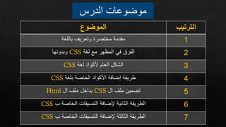 يتناول هذا الكورس أسس تصميم الويب باستخدام لغة CSS، حيث يشمل مقدمة عن اللغة والفرق بين استخدام CSS ودونها، وكذلك كيفية تضمين CSS في صفحات HTML. يهدف الكورس إلى تعليم كيفية تحسين مظهر الصفحات وتصميمها باستخدام خصائص CSS المختلفة. سيتم تناول طرق متعددة لتطبيق CSS كجزء من دورة شاملة لتصميم الويب.