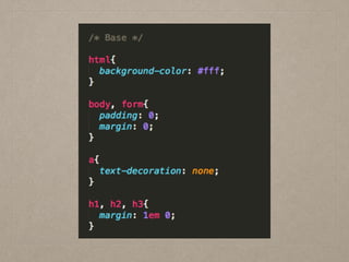 https://speakerdeck.com/hlb/maintainable-css-with-sass-and-compass