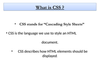 • CSS stands for “Cascading Style Sheets”