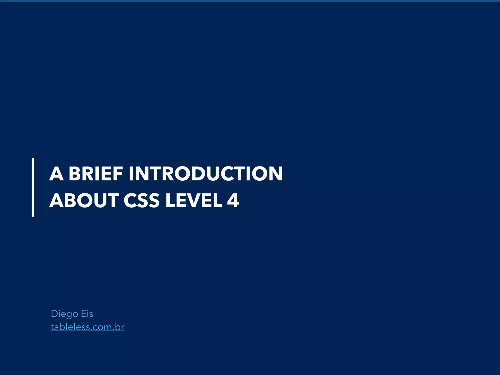 The document provides an overview of CSS Level 4, highlighting new features and pseudo-classes that enhance selection and detection of elements. Key advancements include parent selectors, logical combinators, input pseudo-classes, and media query improvements such as environment, scripting, and interaction media features. The document discusses how these updates simplify web design and improve responsiveness.