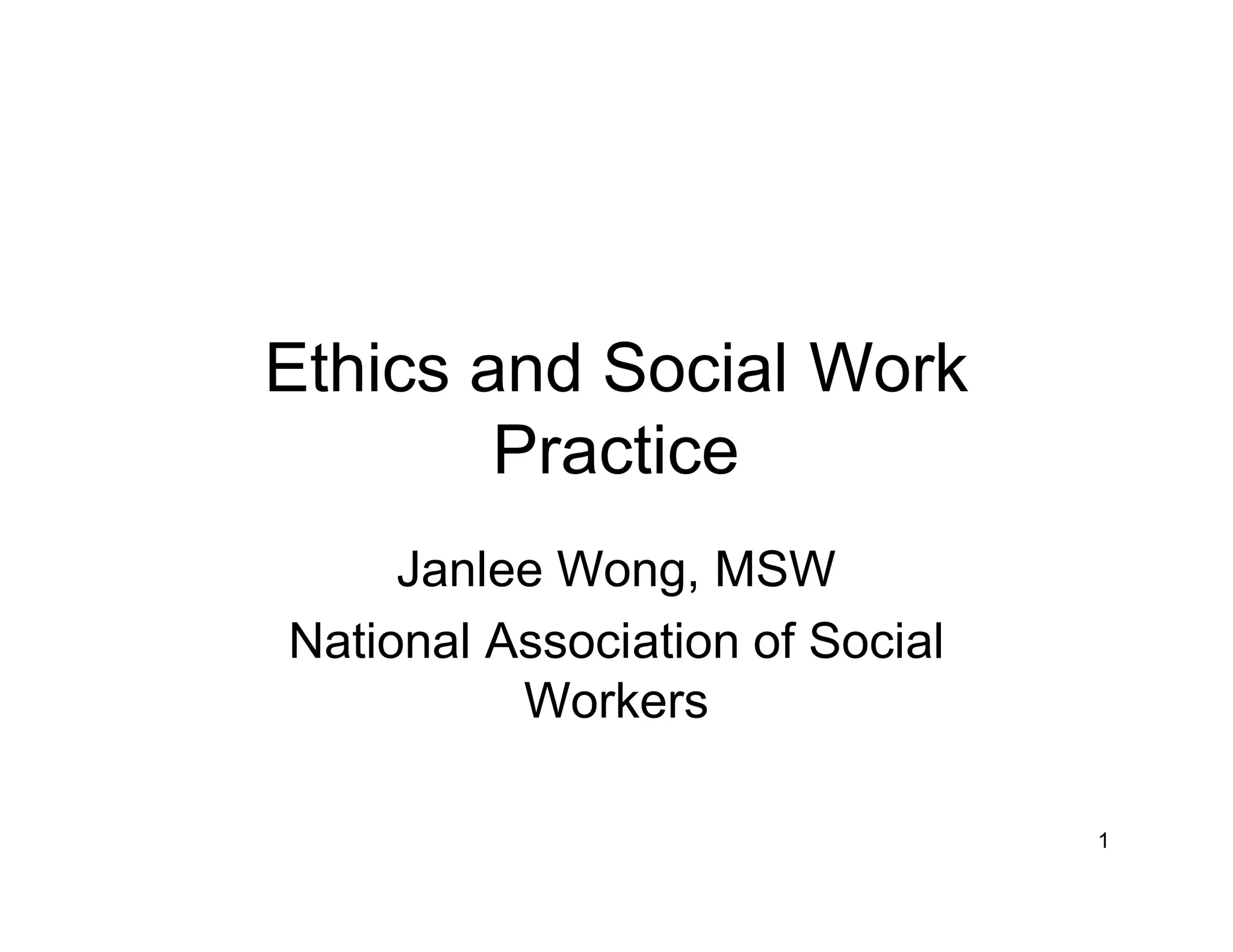 This document outlines the agenda and objectives of an ethics workshop for social workers sponsored by the National Association of Social Workers (NASW). The workshop aims to familiarize participants with social work ethics values, principles, standards, and the NASW Code of Ethics. It includes exercises for discussing perceived ethical dilemmas and how to apply different ethical frameworks. Participants are encouraged to reflect on their own beliefs and consider issues like cultural competence, respect for clients and colleagues, and anti-discrimination. The workshop also addresses navigating ethical conflicts that may arise between organizational demands and professional values.