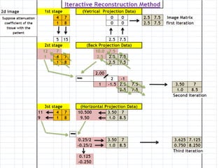 3. Iterative reconstruction methods were also developed and provide better image quality than analytical methods but are too computationally intensive for clinical use. Current research aims to make iterative methods fast enough for real-time medical imaging.