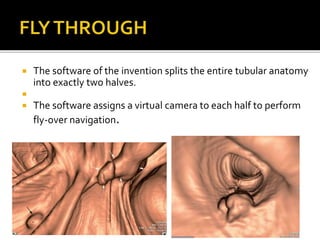 CT colonoscopy, also known as virtual colonoscopy, is a medical imaging procedure that uses x-rays and computers to produce two-dimensional and three-dimensional images of the colon without the need for invasive instrumentation. It can be used to evaluate the colon for polyp detection and colorectal cancer screening. The procedure involves inserting a thin tube to inflate the colon with air for better viewing as the patient lies on an examination table that passes through an x-ray scanner to produce cross-sectional images. A computer then combines these images to generate 3D pictures that can be viewed on a screen.