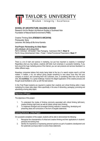 This document outlines the requirements for a final project involving rebranding a daily object. The project has two parts: