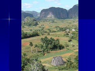 Cuba is an island located 90 miles south of Florida known for its tropical climate and reliance on exports like sugar cane and tourism. Over three-quarters of Cubans live in urban areas, with 20% residing in the capital city of Havana. Since the fall of the Soviet Union in 1991, Cuba has struggled economically and faces challenges meeting domestic needs due to limited international trade.