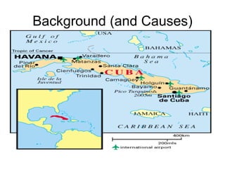The Cuban Missile Crisis arose from escalating tensions between the US and USSR following the Cuban Revolution. In October 1962, US reconnaissance flights discovered Soviet nuclear missile sites being constructed in Cuba. President Kennedy implemented a naval blockade of Cuba and demanded the Soviets remove the missiles. After several days of negotiations, Soviet Premier Khrushchev agreed to remove the missiles in exchange for a pledge from the US not to invade Cuba and to remove its missiles from Turkey. The crisis highlighted the dangers of the Cold War and nearly resulted in nuclear war between the two superpowers.
