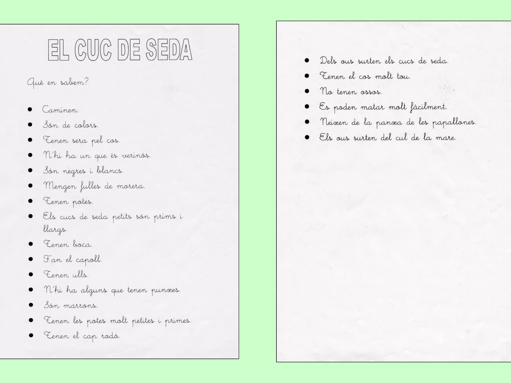 Cucs de seda fitxa de treball