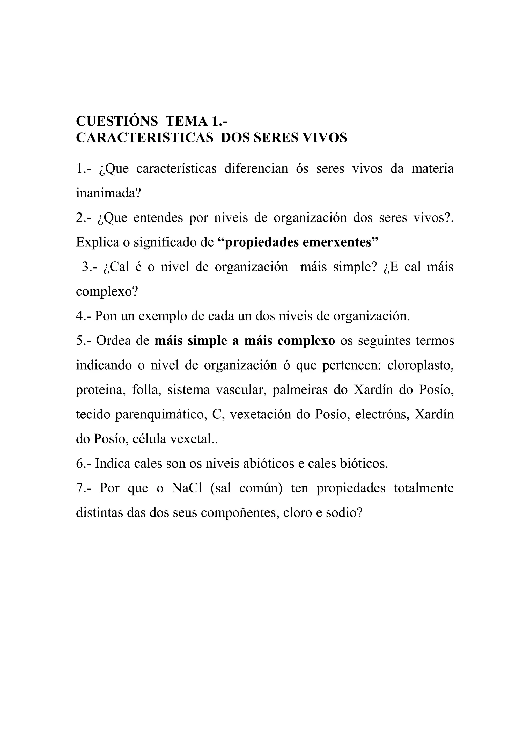 1.- ¿Que características diferencian ós seres vivos da materia