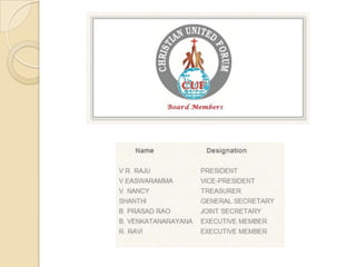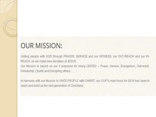 The CUF Scholarship Committee's mission is to recommend and award scholarships to Christian students to help them achieve their academic goals. The committee provides guidance and support to students and ensures scholarships are distributed fairly. It identifies qualifying students and commits to ensuring scholarship awards help academic success.