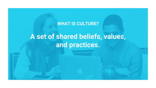 This document summarizes the mission and culture of Palo Alto Software. Their mission is to revolutionize how small businesses set goals and track performance by being the "Fitbit for Small Business." Their culture focuses on relying on data to test ideas and make decisions, solving problems for customers rather than focusing on their own success, being transparent in sharing information, giving employees autonomy over their work, being selective in hiring top talent, and valuing the community.