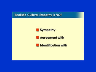 This document discusses the importance of diversity and cultural awareness in the global workforce. It notes that the US population is becoming increasingly diverse and less like a melting pot. Understanding cultural differences can help effectively serve clients by conveying information, developing skills, and overcoming barriers. Key traits that can hinder cross-cultural interactions include low tolerance for ambiguity and being overly task-oriented. Culture refers to the way of life passed down through generations, and generalizations can help understand it while avoiding stereotypes. Nonverbal communication and conflict resolution also vary across cultures.