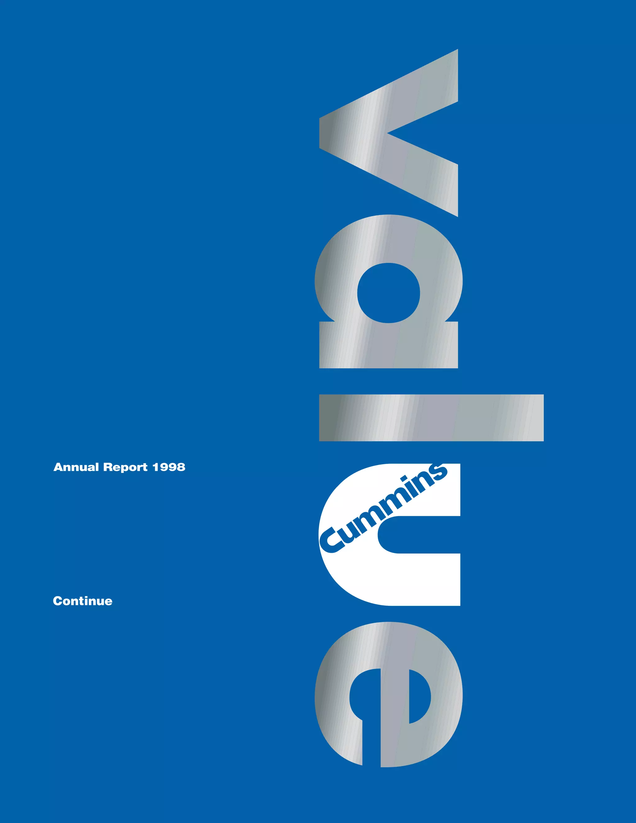 This document is the 1998 annual report letter to shareholders from Cummins Engine Company. It discusses Cummins' focus on creating value for customers and shareholders. In 1998, Cummins saw record sales of $6.3 billion but fell short of earnings targets due to special charges. The letter outlines Cummins' financial objectives of 9% earnings before interest and taxes in strong markets and at least 3% in recessions. It also discusses actions Cummins is taking to improve profitability through restructuring, reducing costs, and improving gross margin and cash flow to increase shareholder value over the long term.